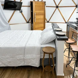 A Suíte Domo da Mata oferece uma experiência única de conforto e contato com a natureza. Pensada para proporcionar momentos inesquecíveis, a acomodação combina sofisticação e charme em meio à paisagem exuberante. Com vista privilegiada do vale, a suíte possui banheira de hidromassagem, ideal para relaxar admirando a beleza ao redor.