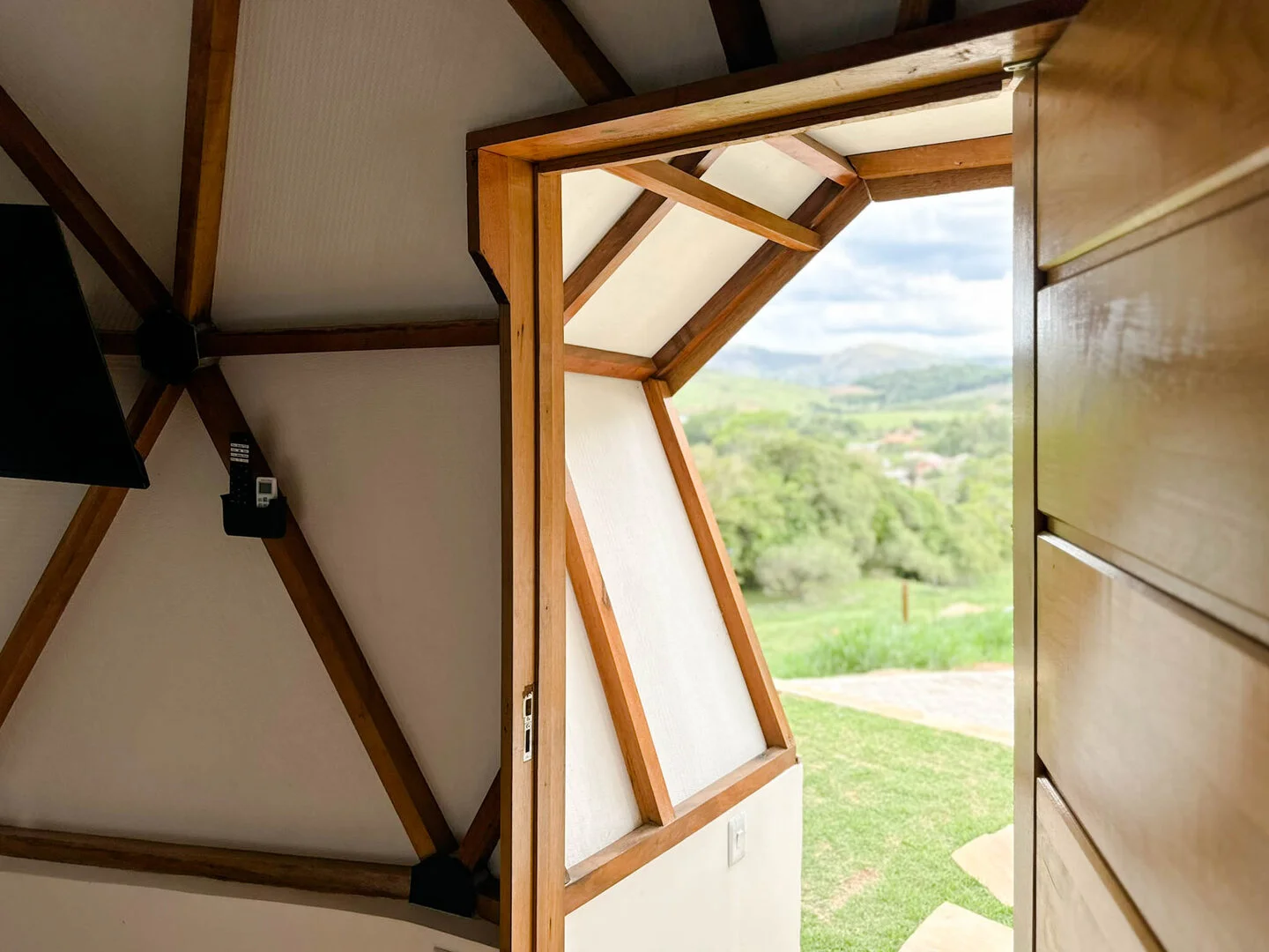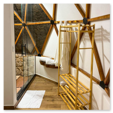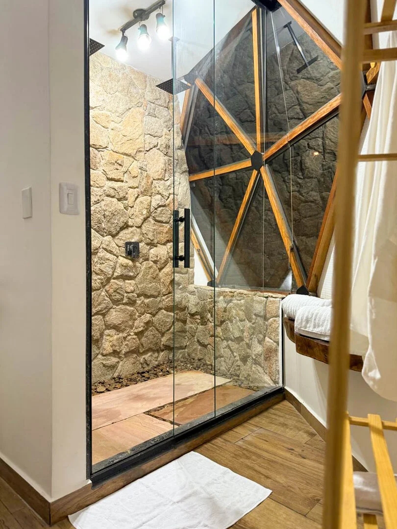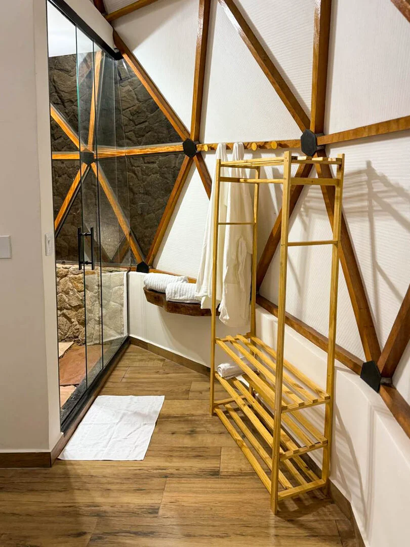 A Suíte Domo da Mata oferece uma experiência única de conforto e contato com a natureza. Pensada para proporcionar momentos inesquecíveis, a acomodação combina sofisticação e charme em meio à paisagem exuberante. Com vista privilegiada do vale, a suíte possui banheira de hidromassagem, ideal para relaxar admirando a beleza ao redor.